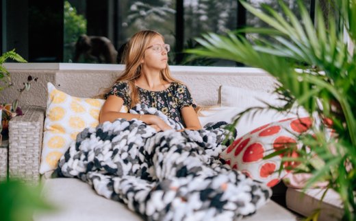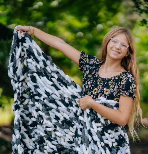 "I love hand-knitting these blankets because to me, it's very calming and I love making tangible things that I can share with others."
