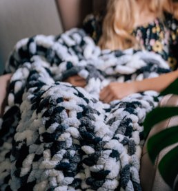 Soft, hand-knitted blankets, perfect for movie nights or a morning read on the porch.